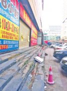 台阶上一些地板砖脱落破碎 曾傲立郑州的贸易大厦风光不再 外墙上悬挂的广告牌风化脱落 □记者 郭致远 文 图 阅读提示|虽然身居闹市街区,但它的外墙体瓷片脱落、门前长了野树和...