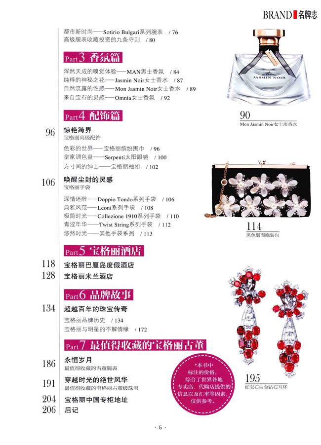 本书针对来自意大利的全球第三大高级珠宝品牌Bulgari,进行最全面的品牌产品展示与介绍。针对珠宝、腕表、香水、皮具、配饰,五大主要产品线进行详细的介绍与推荐,另外单独呈现Bulgari古董珠宝、Bulgari酒店、明星与Bulgari产品等内容。本书还将Bulgari品牌的成长历史与所创作的诸多精湛工艺与革新进行了全面阐述,让读者深刻了解Bulgari为何能超越诸多品牌,成为被人们公认的世界第三...