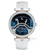 梵克雅宝Le Pont des Amoureux逆跳手表 梵克雅宝Le Pont des Amoureux逆跳手表 创新关键词:逆跳,浪漫情景 机芯:机械机芯 表壳:圆形钻石白金表壳(38毫米) 表盘:背光剪影珐琅工艺表盘,白...